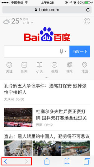 当我们在进行上网地时候,突然想要回到之前浏览过地界面。这时候,这个功能就会显得很方便了。我们在网页下方看到【前进】和【后退】图标,长按图标,我们就可以快速查看该标签页刚才的历史纪录了,点击想要浏览的网页,就可以进入该网页了。