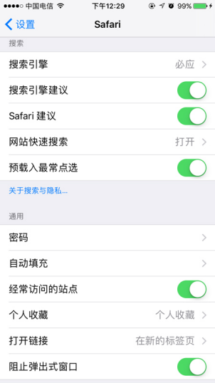一.Safari设置界面