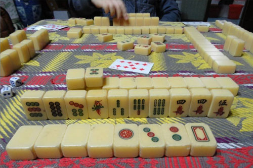 每局游戏开始之前由当局庄家投掷色子确定开牌位置,色子采用两颗,一般采用的方法是点数大的一颗确定起牌方位,点数小的一颗确定起牌墩数,当然,也有些规则是直接按两颗色子点数之和进行确定的。在这里有一个概念大家必须明确,除第一局外,每局游戏的庄家由上一局胡牌的玩家担任,如果上一局没有任何玩家胡牌,则下一局庄家仍然由上一局的庄家继续担任。