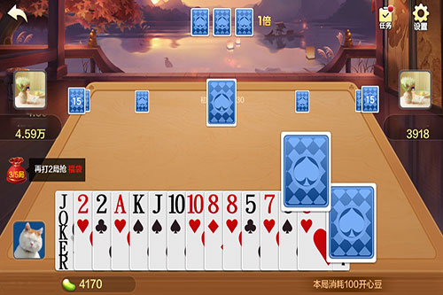 2、玩法:支持三人、四人、癞子、明牌、比赛等玩法,多种玩法任君选择。