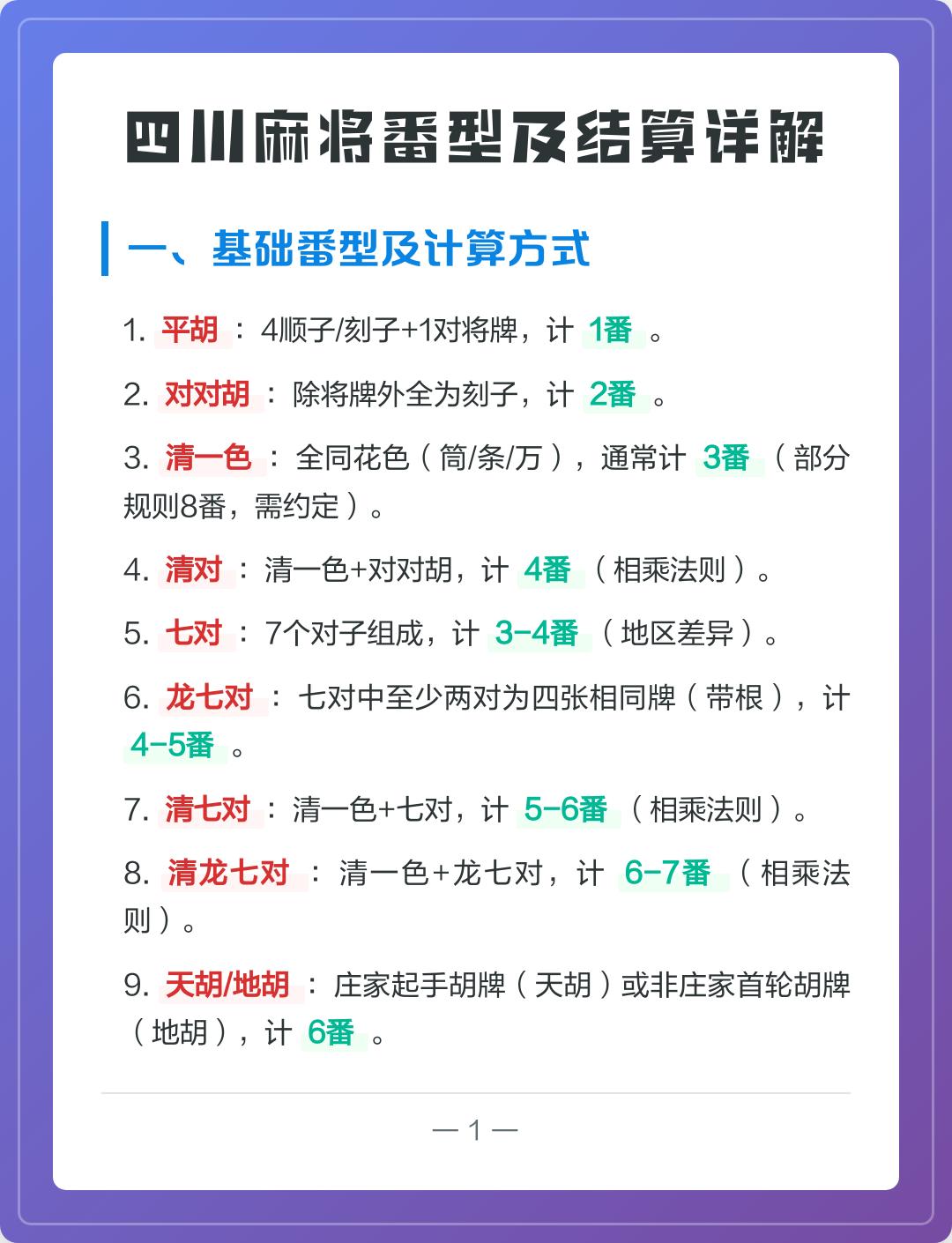 1.平胡😊:作为最基本的胡法,平胡通常加一番。如果自摸,则通常算两番😉。