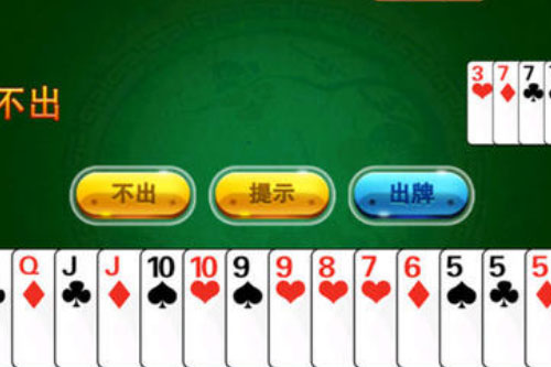 3、出牌:每局游戏由地主首先出牌,接下来按逆时针顺序依次出牌,玩家必须按照牌型规则进行出牌,只能打合法的牌型,并且后出的玩家所出的牌型必须与之前的玩家一致且牌力要大于前者。