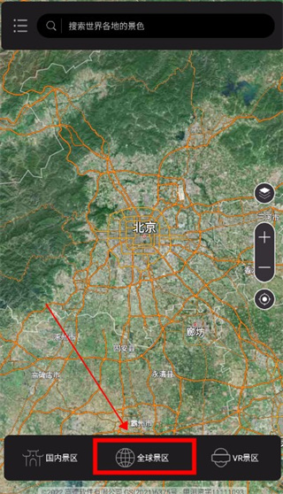 1、在本站下载安装该软件,授权软件位置信息后打开软件,进入首页后点击下方“全球景区”;