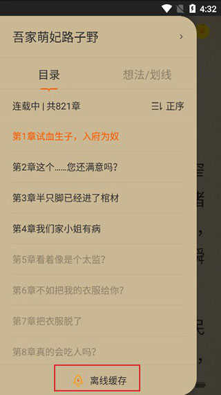 5、在章节列表中可选择“离线缓存”,即使没有网络也能随时翻阅;
