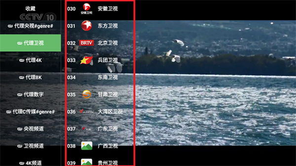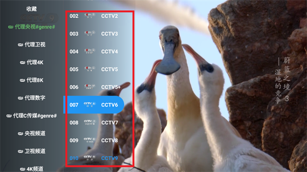 3、点击屏幕左侧弹出电视直播频道栏。