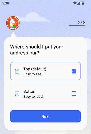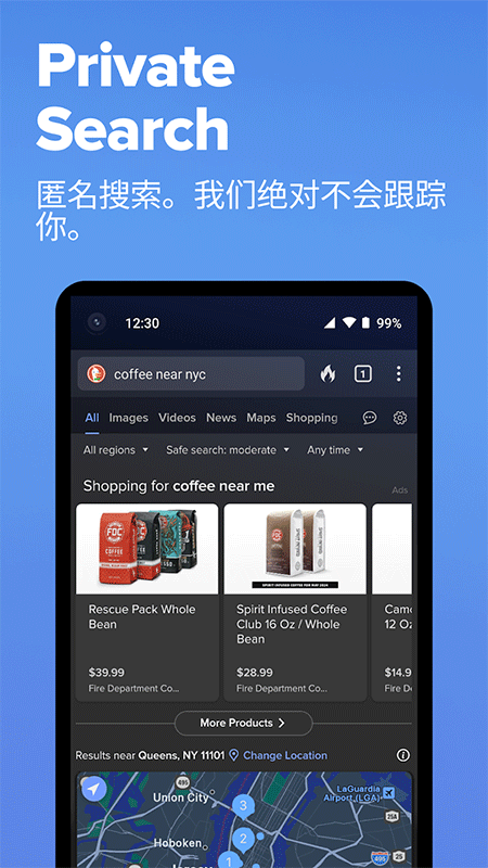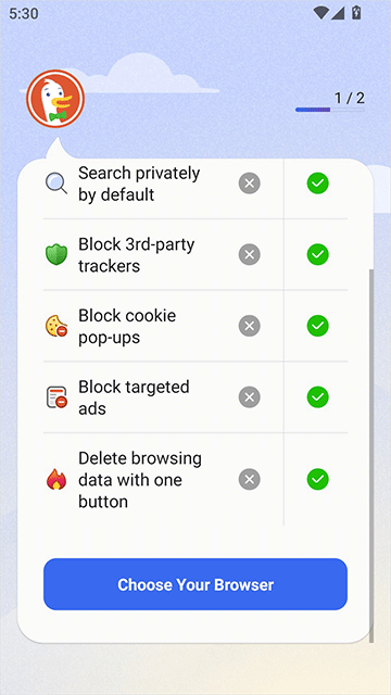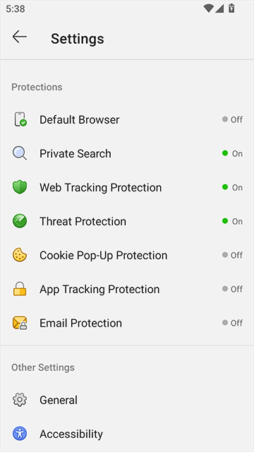 • 默认私密搜索:DuckDuckGo私密搜索已内置,因此您可以轻松在线搜索而不被追踪。