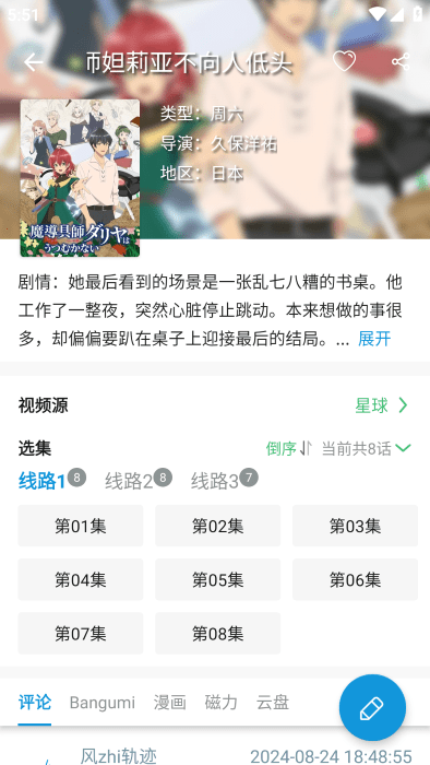 及时更新:本款软件中的动漫资源紧跟官方更新速度,确保用户能第一时间观看到最新的动漫情节,非常地便捷。
