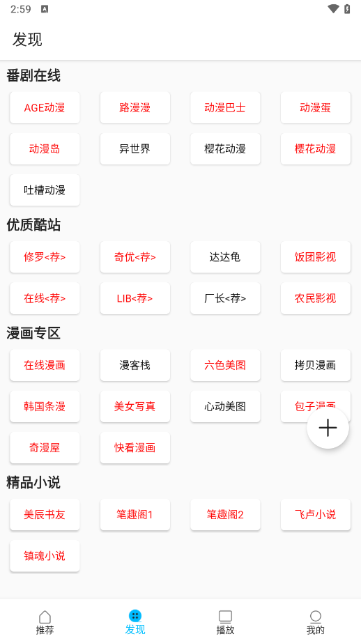 4、发现板块收纳了各种站点,更牛批的是支持播放、下载磁力资源,我就不演示了,你们懂的。