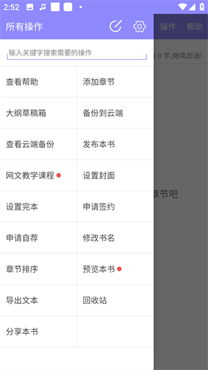 6、新建小说完成后,点击所创作的书可进入后台操作页面,在这里可以实现添加章节、设置封面、发布本书等功能。