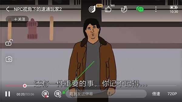弹幕撤回可以通过屏蔽弹幕的方式来达到,用户在全屏观看页面中点击下图绿色箭头所指的弹幕设置图标