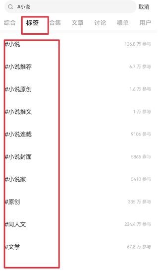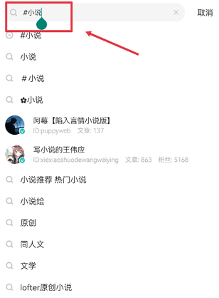 1、在首页搜索框内输入标签#小说