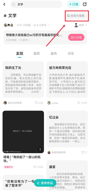 3、进入后点击右上角的标签内搜索