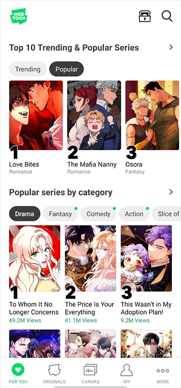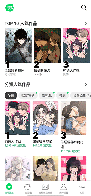 - 探索全球最大的网络漫画库,涵盖动作、爱情、惊悚等各种题材。