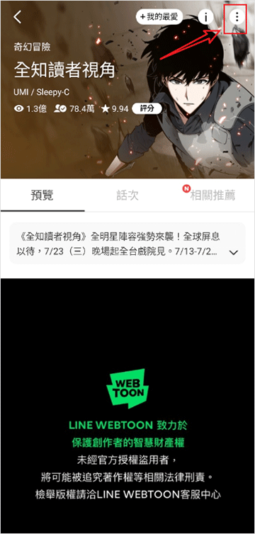 - 畅享全球热门作品,例如《奥林匹斯传说》、《黑手党保姆》、《全知读者》、《校车墓地》和《再婚皇后》。