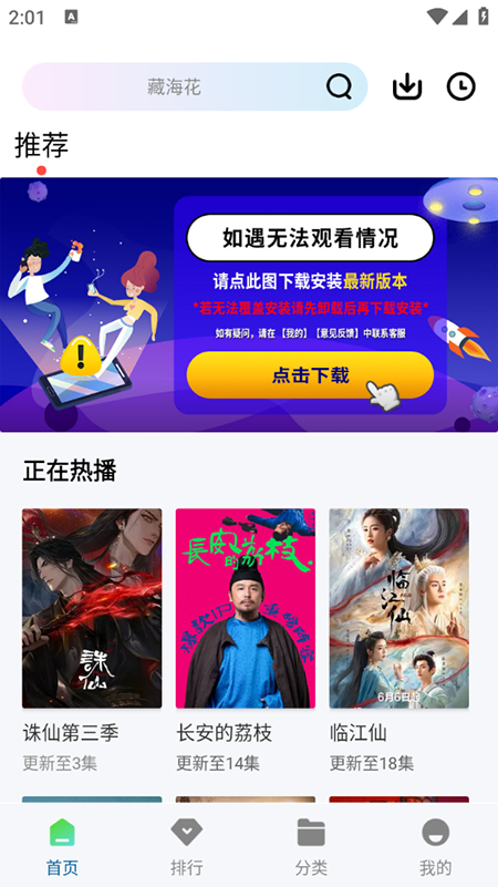 1、在本站内下载安装后进入首页,浏览推荐或分类内容,点击感兴趣的影片进行播放。