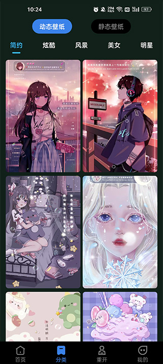 涵盖的壁纸资源还是很丰富的,各种不同的类型都有进行详细的划分