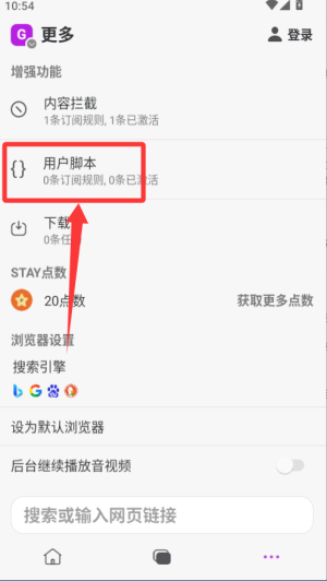 3、用户脚本:Stay浏览器拥有着最为强大的脚本管理功能, 支持油猴,暴力猴脚本, 你可以方便的安装和编写脚本,通过Stay浏览器你可以充分的自定义用户脚本,包括重写设置,自动更新检测等等。