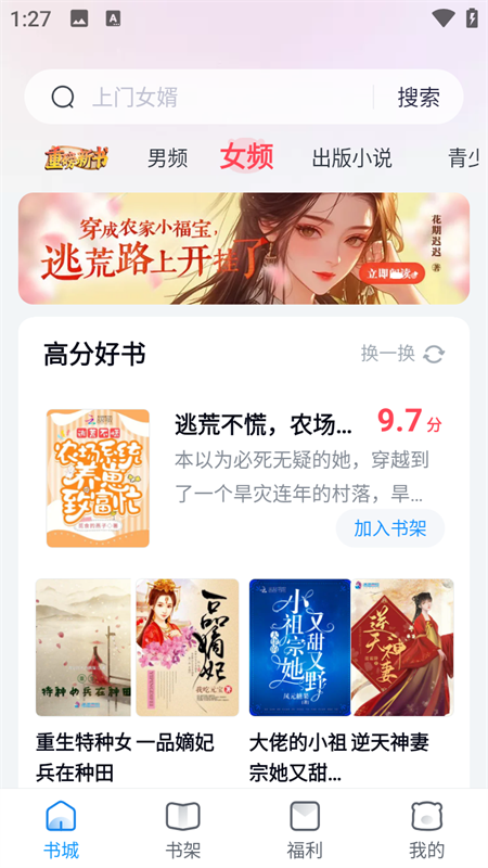 海量书库,原创女生、原创男生、现代言情任意选择;