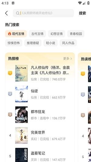 2、平台收录的作品量很大,新书、老书、热门榜样样齐全,想看什么直接搜就能找到。