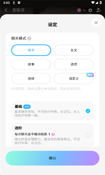 动漫角色 OC 功能:允许创建原创动漫角色,自定义其形象、背景故事等细节,还能让原创角色与 AI 恋人展开互动,解锁更多趣味场景。