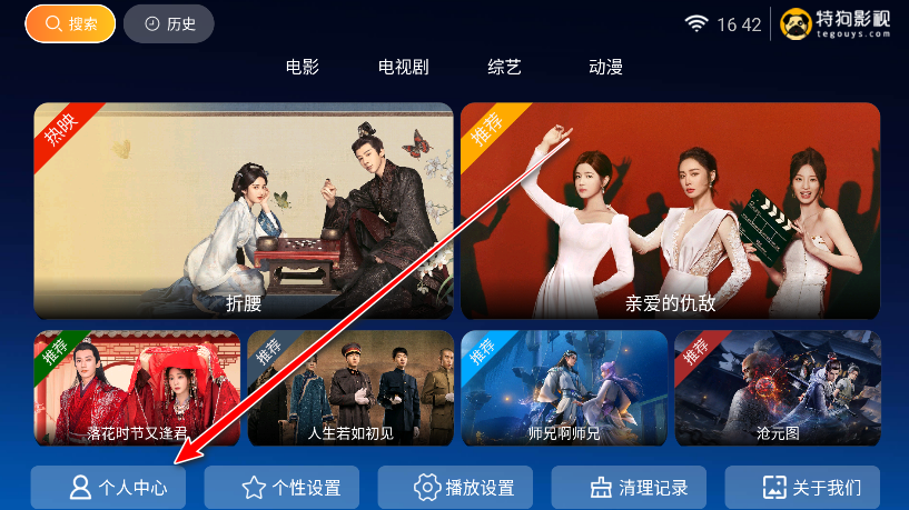 1.打开新特狗TV,这个软件比较特殊,密码忘记了大家可以重新注册。比如大家点击左下角的个人中心。