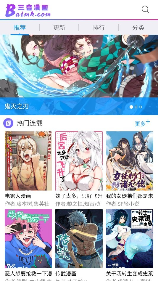 2、在主界面上可以看到各种漫画推荐,也可以通过搜索框搜索。