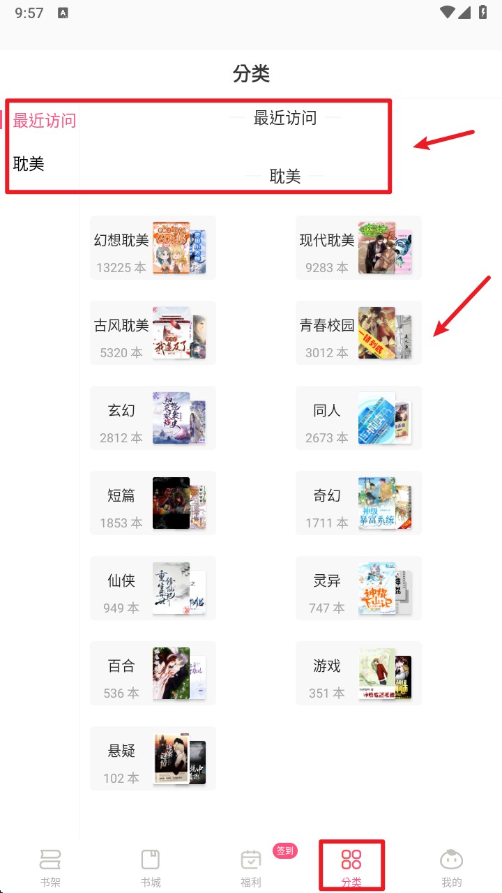 5. 点击底部的「分类」可浏览耽美、玄幻、校园等分类作品,依照喜好快速筛选阅读方向。