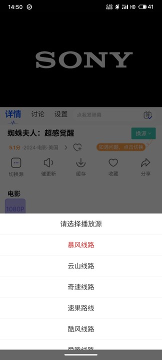 3、如果播放卡顿或失败,可以尝试切换其他播放源观看