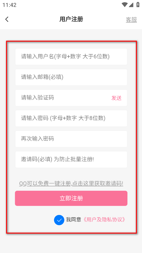 3、按照软件的要求填写信息,然后勾选协议,最后点击立即注册即可。