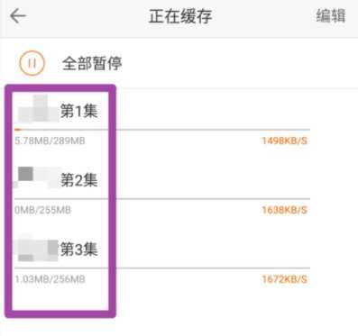 4、在软件的缓存中心即可看到正在下载缓存或已缓存的视频,通过右上角编辑选项能够管理。