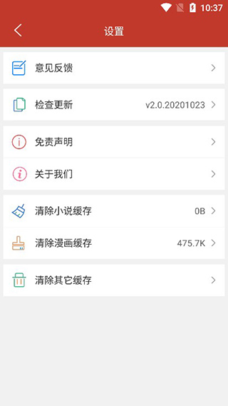 2、在这个页面当中可以看到浏览记录和下载的小说,此时点击设置。