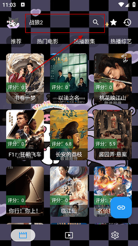 2、点击首页顶部搜索栏,输入影片名称,点击搜索结果进入详情页。