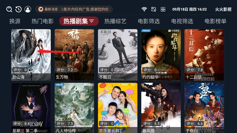 2、首页可根据分类、推荐或直接搜索找到心仪剧集。