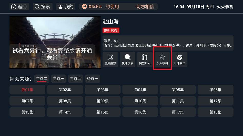 5、播放页点击“加入收藏”即可收藏剧集了。