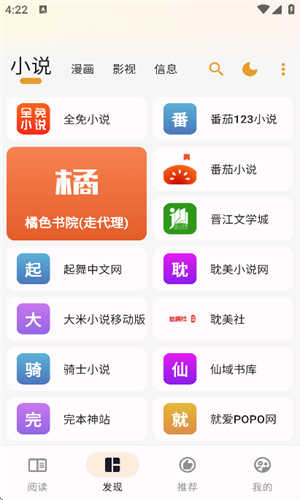 4、到这来就可以开始使用了,小说、漫画、影视书源都有,直接进入对应的就可以进行观看了。