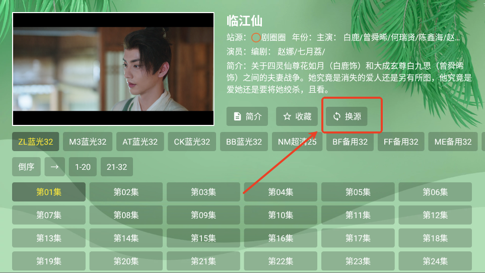 4.影片详情界面可换源观看。不喜欢这个源随时换掉,都是免费使用。
