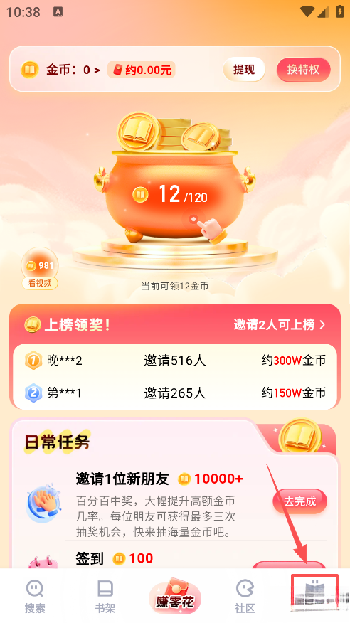 1、下载并安装追甜小说app,安装完成后打开app进入到主界面。