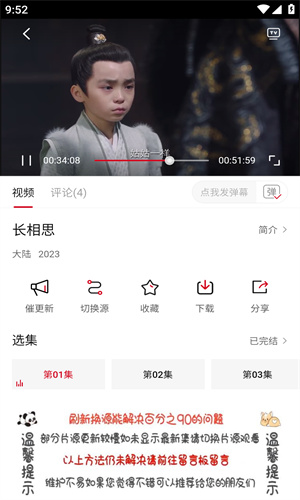 3、多播放源,既有专属的影视解析源,也有官方视频平台的直链播放源线路能够切换。