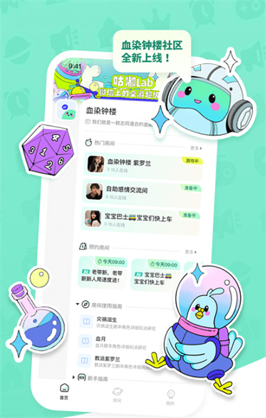 选择感兴趣的派对类型查找各种有趣的交友派对并进房互动。