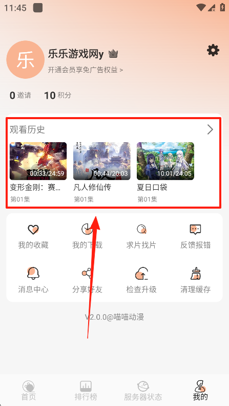 2、接着找到观看历史并点击