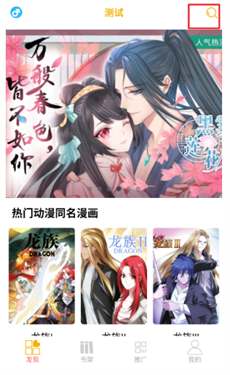 1、点击右上角进入搜索栏,输入想看的漫画进行搜索