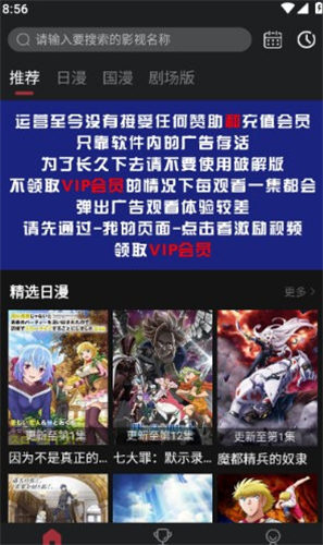 3、在搜索框中输入想要看的动漫作品名称或关键词,或者浏览推荐的动漫列表。