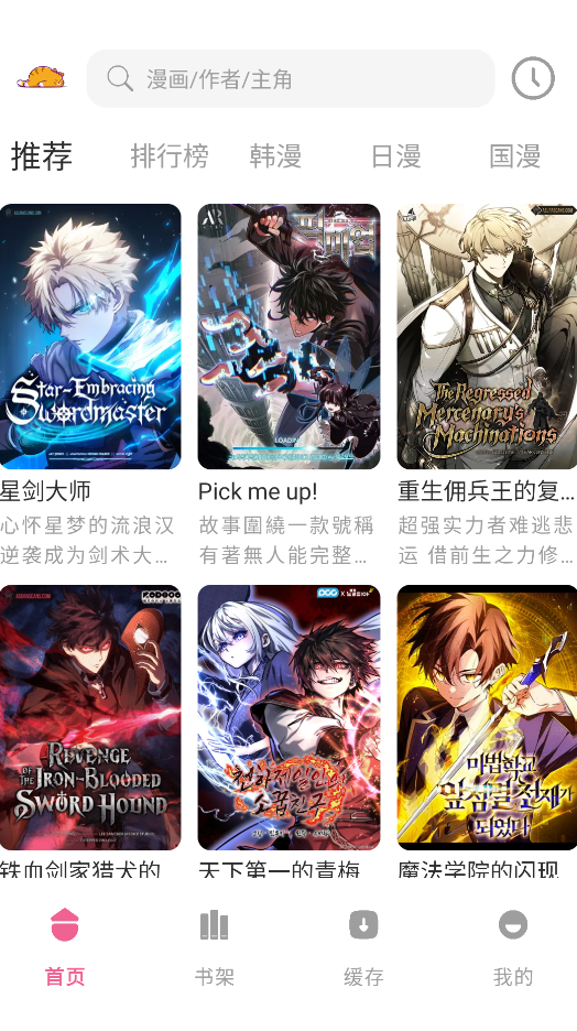 1、下载安装并打开软件,在首页中有众多漫画推荐。