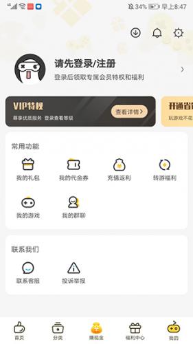 6、进入【我的】界面,包括一些常用的功能,比如我的礼包、我的代金券、充值返利、转游福利、我的游戏、我的群聊、联系客服等等,以上就是0氪手游平台app的使用方法了。