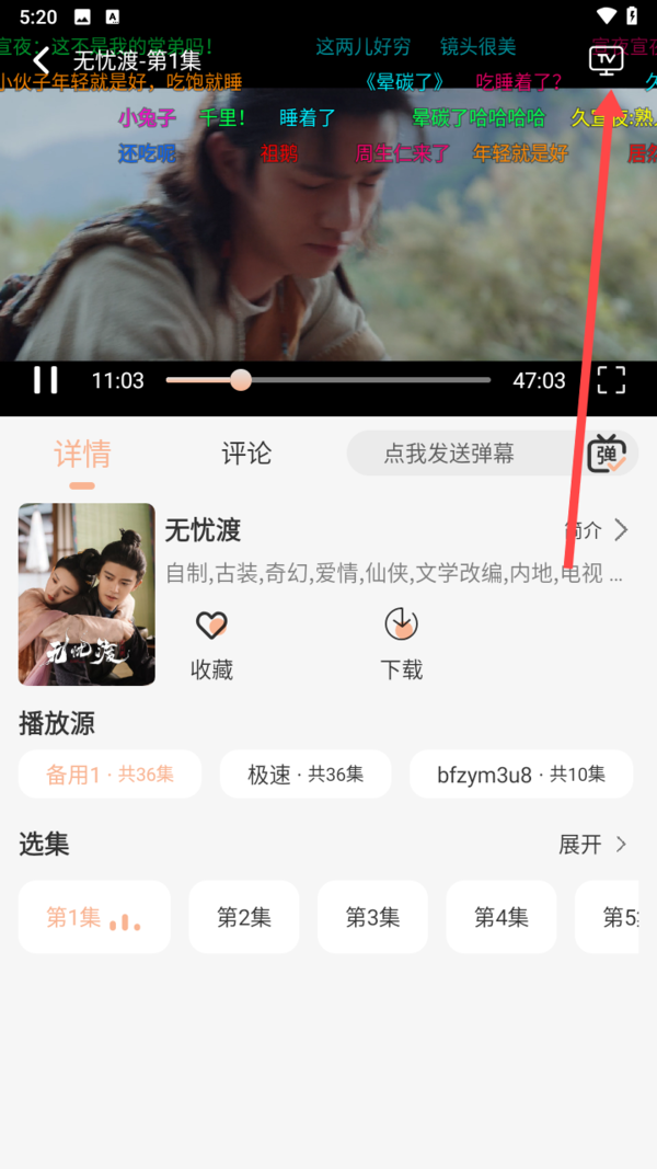 2、接着任意播放一部剧集内容,这里小编以“无忧渡”为例。