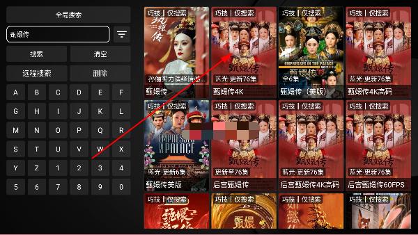 2、在搜索框内输入你想观看的内容的首字母或关键词,然后从自动显示的搜索结果中选择最符合你需求的那一项。