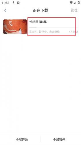 5、在下载列表页面,观众可以查看所有任务的进度。如需暂停某个任务,点击相应剧集即可。