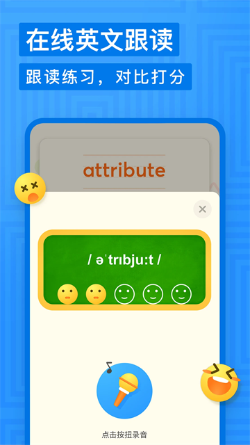 5. 跟读练习:内置智能跟读功能,结合发音评分机制,有效提升儿童英语听说能力,实现“听得准、说得对”。