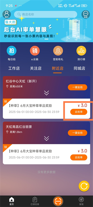 3. 绑定完成后,即可进入任务页面点击“去抢单”。