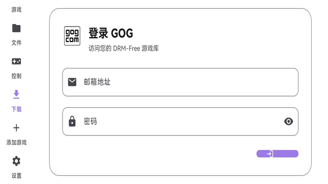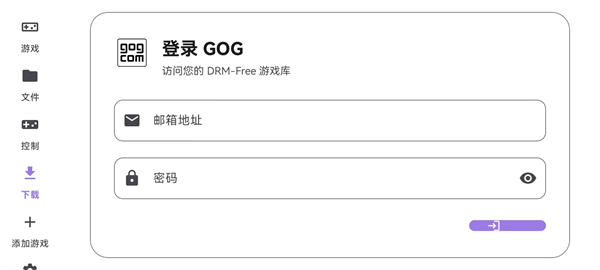 2、进入主界面后点击【下载】按钮,随后登录您的GOG账户。